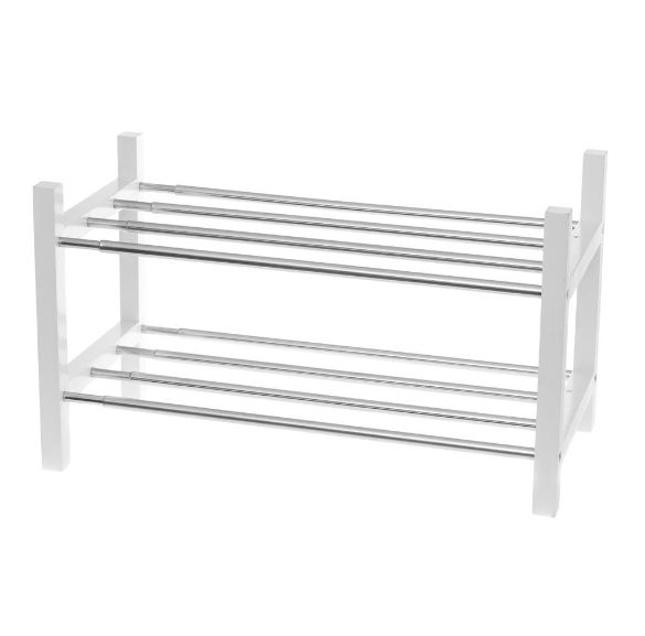 Kenkätelineen säädettävyys mahdollistaa telineen monipuolisen sijoittelun ja käytön. Syvyys 30 cm, korkeus 37 cm, leveys säädettävä 57-100 cm. Kasattava.