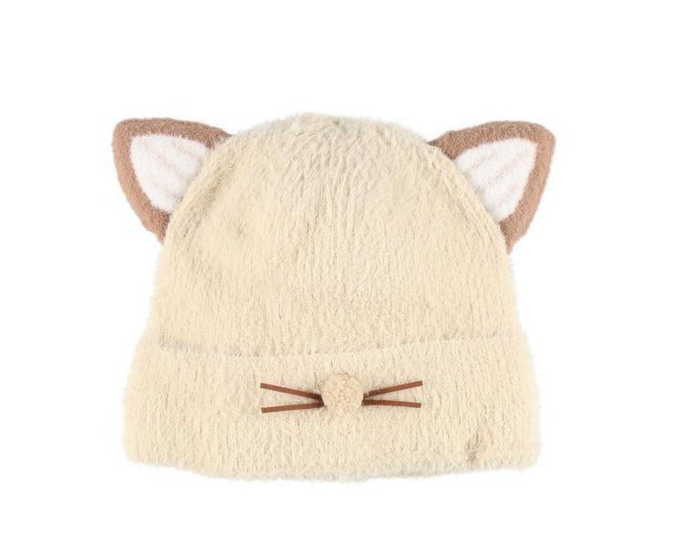 Suloisessa pipossa on pehmeäksi harjattu pinta ja lämmin tekoturkisvuori. Pipoa koristaa korvat ja viikset. Käsinpesu