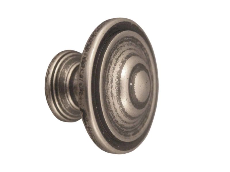 Samakista valmistettu antiikkinuppivedin, jossa pinta viimeistelty tinatun patinoituneeksi. Vetimen halkaisija on 35 mm, nupin korkeus reunoilta 19 mm ja keskiosasta 22 mm. Pakkaus sisältää ristipääruuvit 10-19 mm vahvuiselle ovilevylle. Pakkauksessa 2 kpl.