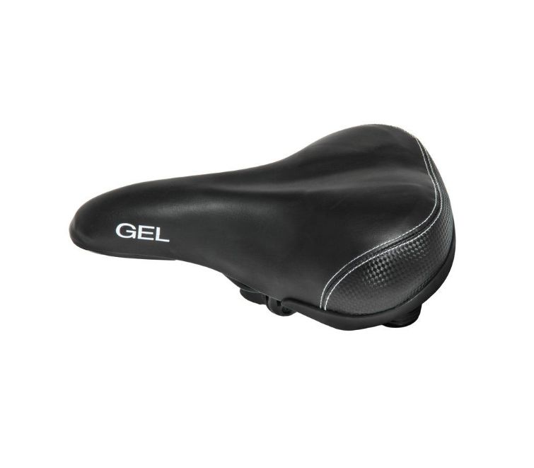 Miellyttävällä geelitäytteellä varustettu polkupyörän satula. Kumijousitus tekee satulasta mukavan käytössä.