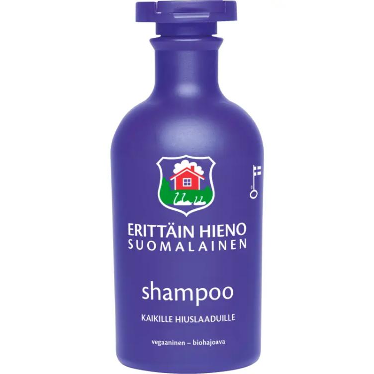 Erittäin Hieno Suomalainen shampoo on Suomen myydyin shampoomerkki. Se on pessyt hellävaraisesti suomalaisia hiuksia jo 1970-luvulta lähtien. Shampoon koostumus on pehmeän täyteläinen. Miedosti hajustettu shampoo sopii kaikille hiustyypeille.