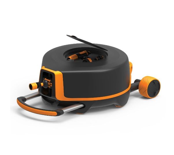 Kun tuot uuden Kastelukela XL:n puutarhaasi, voit aloittaa kastelutyöt muutamassa sekunnissa, sillä mitään asennuksia ei tämän täydellisen ja valmiin paketin kanssa tarvitse suorittaa. Seinäasennustakaan ei vaadita, sillä kastelukela voidaan sijoittaa mihin tahansa puutarhassa, jotta kastelutyöt sujuisivat mahdollisimman helposti ja mukavasti ilman, että letku takertuu puihin tai nurkkiin. 360 astetta kääntyvä kela mahdollistaa laajankin nurmikon kastelun 20-metrisen letkunsa avulla, jolloin katat jopa 1256m² alan – siis kaksi kertaa suuremman kuin perinteisillä seinäkiinnitteisillä ratkaisuilla! Vaaka-asennossa oleva kela ei kaadu vahingossakaan ja automaattinen sisäänkelaus sekä lisäosien säilytyslokero tekevät kastelukelan ja sen osien säilyttämisestä helppoa. Kastelukelan renkaat helpottavat kelan liikuttelua puutarhassa.