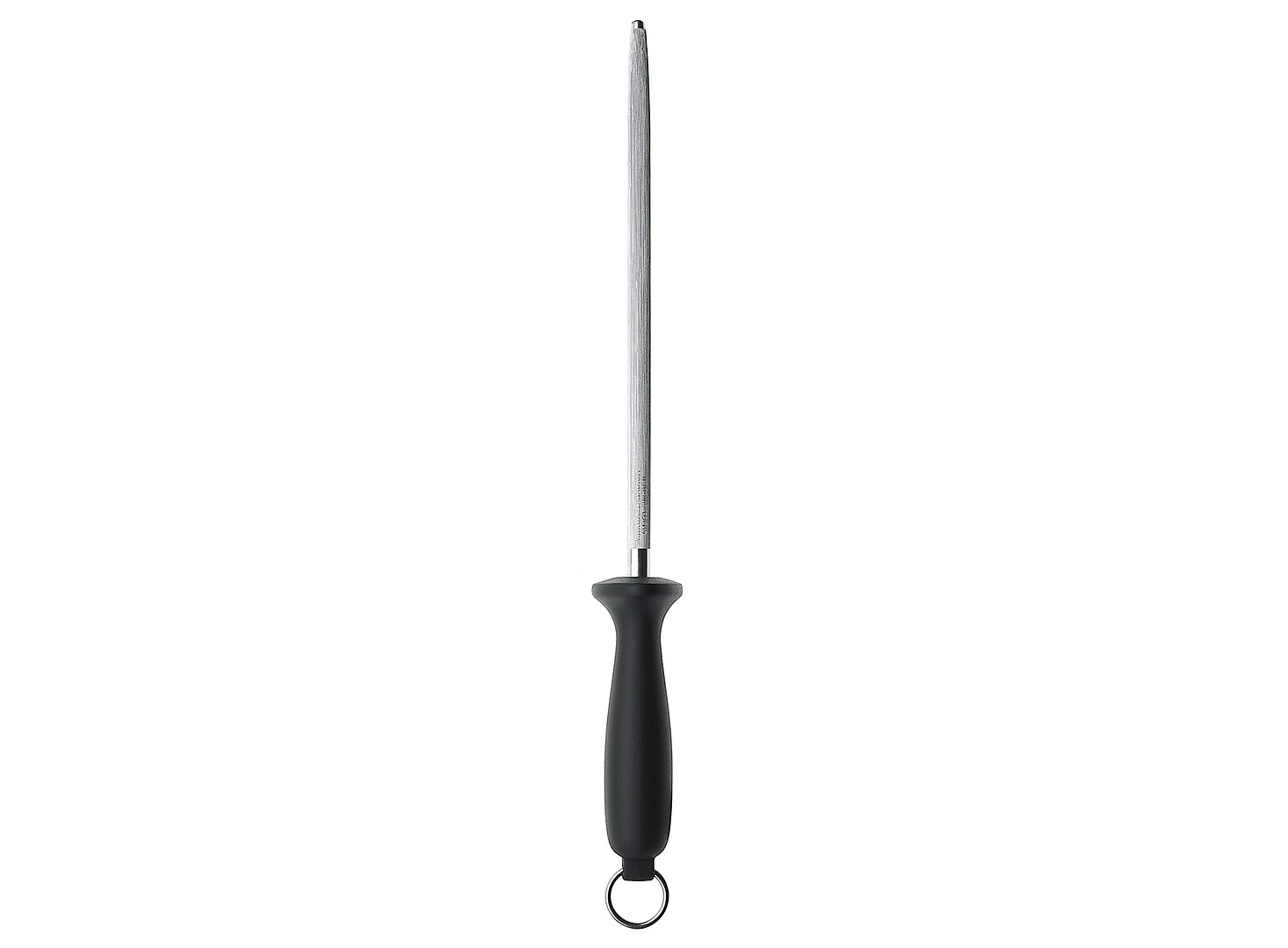 GastroMax™-teroituspuikko auttaa pitämään suorateräiset veitset terävinä. 20 cm pituinen teroituspuikko sopii sekä pienten että isojen veisten huoltoon. Muovisesta kädensijasta saa tukevan otteen. Se on muotoiltu niin, että sormet säilyvät teroittaessa turvassa. Teroituspuikkoa kannattaa käyttää säännöllisesti ylläpitämään veitsien terävyyttä. Käsinpesua suositellaan.