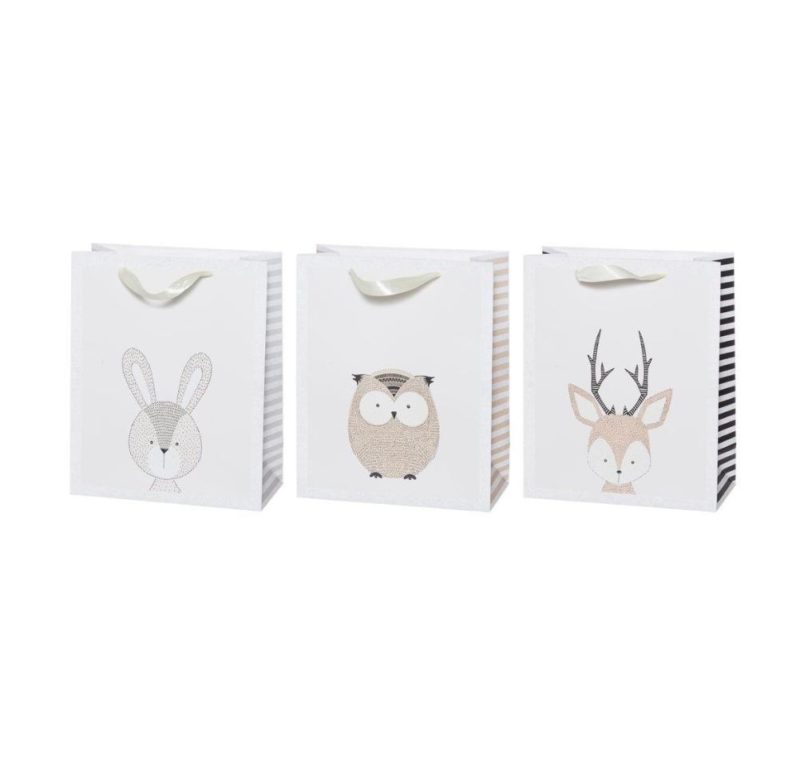 Lahjakassi suloisella eläinaiheella ja glitter koristelulla. Lahjakassit tekevät lahjojen paketoimisesta helppoa ja nopeaa. Lahjakassissa nauhakahvat.