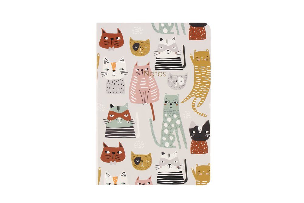 Ihastuttava vihko kissateemalla. Pehmeä kansi, kultafolioleimaus, liimasidonta, 80g paperi, 80 sivua.