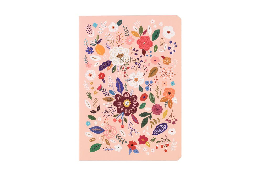 Kaunis vihko kukkateemalla. Pehmeä kansi, kultafolioleimaus, liimasidonta, 80g viivoitettu paperi, 80 sivua.