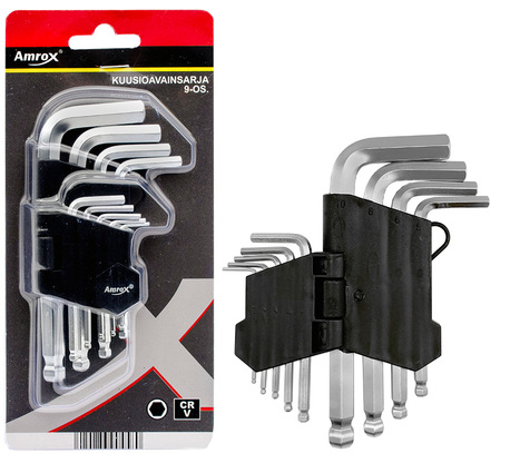 -9-osainen sarja sisältää koot 1.5, 2.0, 2.5, 3.0, 4.0, 5.0, 6.0, 8.0, ja 10,0 mm