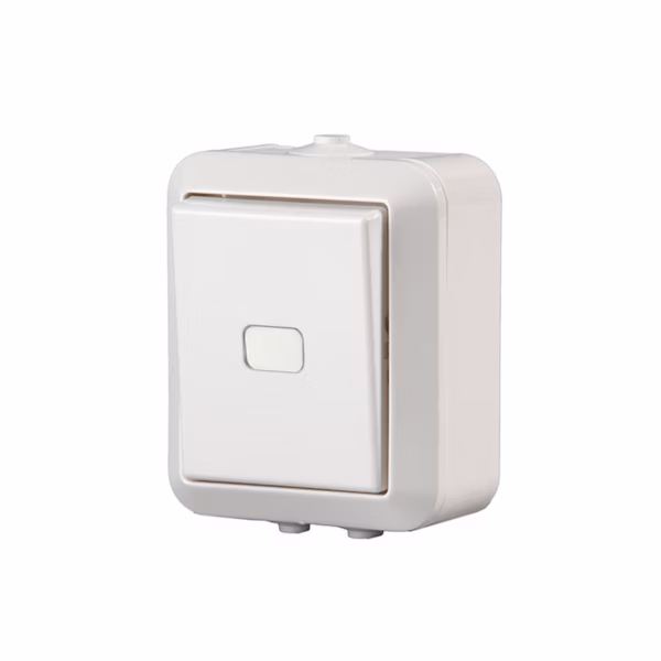 Pinta-asennettava umpikoteloitu kytkin Pinta-asennettava umpikoteloitu kytkin jousiliittimin. Kytkimen rungossa on 2 lisäliitintä joita voi käyttää johtimien jatkamiseen. Liittimiin voi kytkeä max 2 johdinta ja ne on hyväksytty ML ja MK johtimille. Kotelon pohjassa on ylimääräinen potentiaalivapaa ruuviliitin johtimen jatkamiseen tai johtolajin vaihtamiseen. Merkkivalon kytkentämahdollisuus. Toimitus sisältää sekä kirkkaan että valkoisen linssin, mutta ei sisällä merkkilamppua.