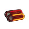 Kuvaus: Oikea, jarru/parkki/sumu/peruutus/rekisterikilvenvalo/dynaaminen vilkku, ledit syttyvät viiveellä saaden aikaan kääntymissuuntaan liikkuvan valon, IP67, -40 – +65C. ruuviväli 150mm, johto 250mm
