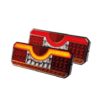 Kuvaus: Vasen, jarru/parkki/sumu/peruutus/rekisterikilvenvalo sivulle/dynaaminen vilkku, ledit syttyvät viiveellä saaden aikaan kääntymissuuntaan liikkuvan valon, ADR, IP67, -40 – +65C, ruuviväli 150mm, johto 200mm