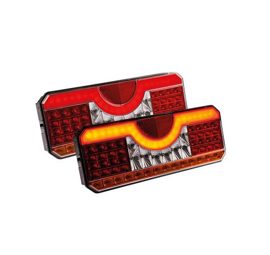 Kuvaus: Vasen, jarru/parkki/sumu/peruutus/rekisterikilvenvalo sivulle/dynaaminen vilkku, ledit syttyvät viiveellä saaden aikaan kääntymissuuntaan liikkuvan valon, ADR, IP67, -40 – +65C, ruuviväli 150mm, johto 200mm