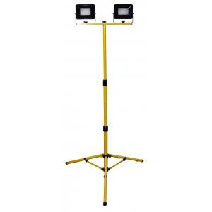 Harjun kolmijalalla varustettu 2×20 W WORK led-työvalaisin valaistukseen sisällä ja ulkona. Valoteho 2×1600 lm. 3 m pitkä kumikaapeli ja pistotulppa sisältyvät valaisimeen.