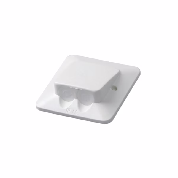 Kojerasioille tarkoitettu IP44 kansi. Kannessa kaksi vedonpoistajaa kaapeleille Ø 6,0 – 15,0 mm.