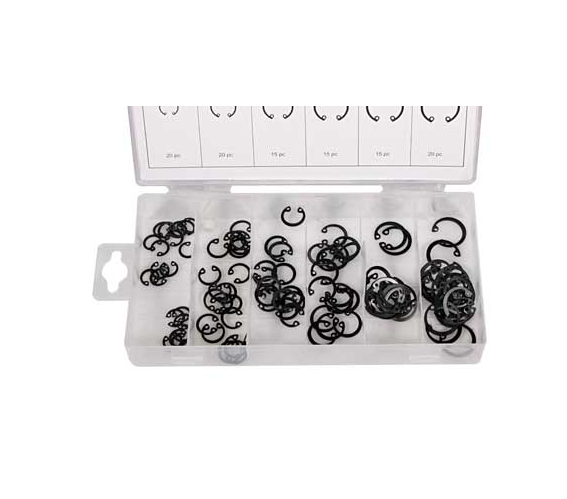 Kuvaus: Lukkorengaslajitelma reikään 105kpl, ø11-20mm. ø (kpl): 11 (20), 13 (20), 14 (15), 16 (15), 19 (15), 20 (20)mm