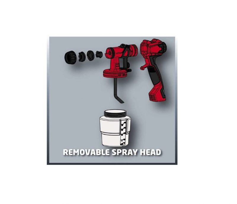 - Koska suutin on irrotettava, maalin vaihtaminen ja maalin kanssa tekemisiin joutuvien osien puhdistaminen käy helposti.