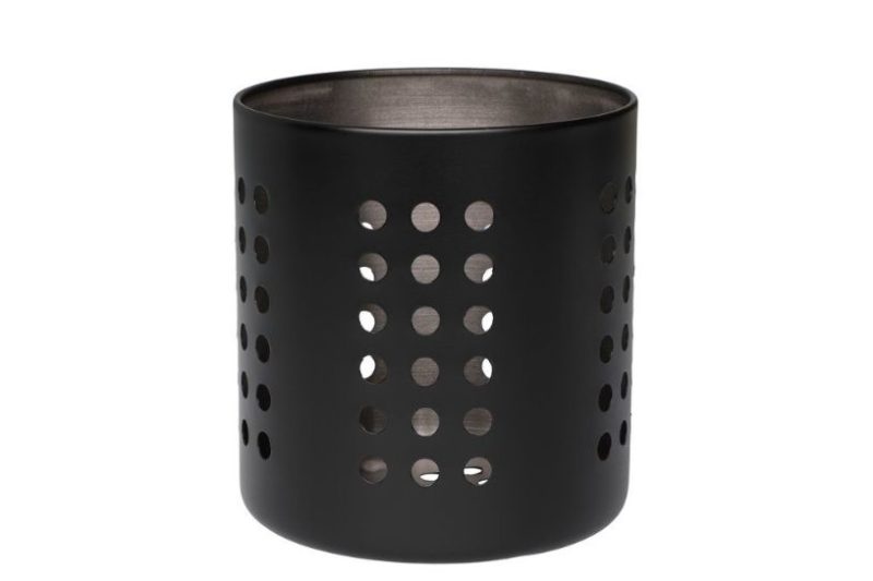 Tyylikäs ruostumattomasta teräksestä valmistettu aterinteline soveltuu mainiosti myös keittiövälineiden säilyttämiseen työtasolla. Korkeus 13 cm. Suositellaan käsinpesua.