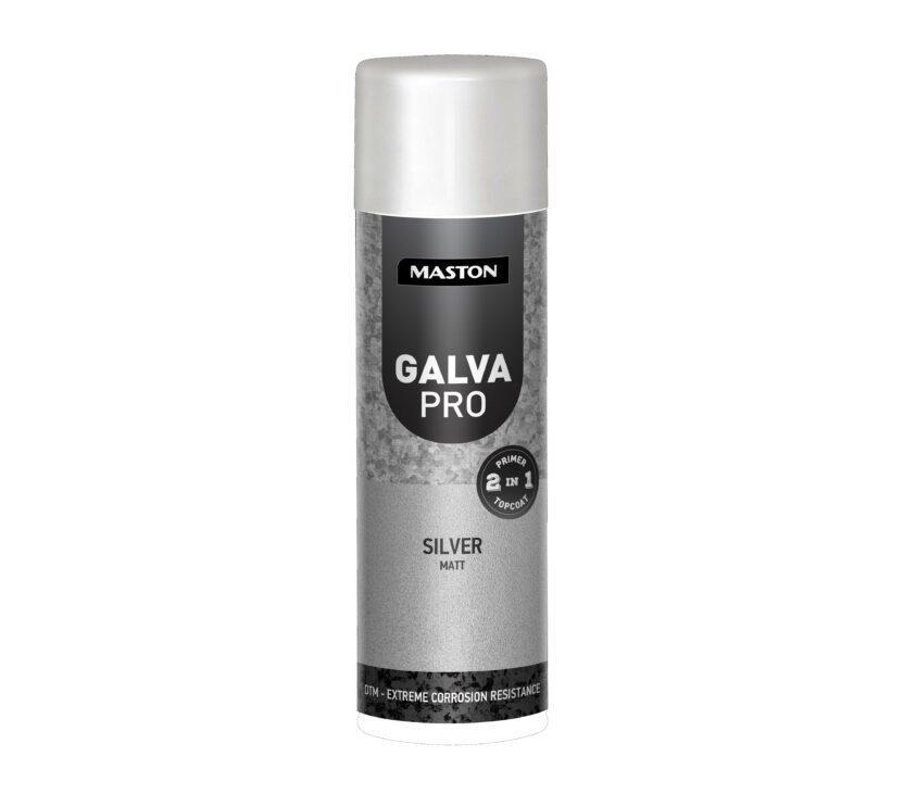 Maston Galva Pro spraymaali on 2in1 tuote, joka soveltuu käytettäväksi sellaisenaan tai niin pohja- kuin pintamaalinakin. Maali soveltuu lähes kaikille metalleille (esim. rauta, alumiini, rosteri, haponkestävä- ja galvanoituteräs) sekä esim. puupinnoille. Maalin ruosteenesto-ominaisuudet ovat huippuluokkaa ja on testattu ASTM B117-2019 standardin mukaisesti, kesto 400h.