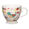 Hersyvä lintukuosi. Kaunis keraaminen muki piristää arkiaamuja ja harmaitakin päiviä. Tässä mukissa on kauniisti muotoiltu korva, josta saa hyvän otteen. Mikron ja konepesun kestävä.