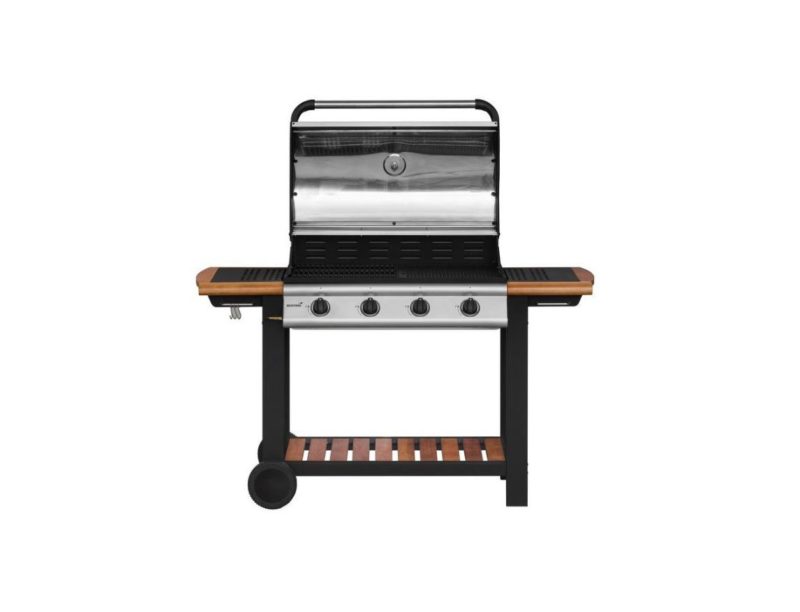 Näyttävä ja tukeva 4 valurautapolttimella varustettu kaasugrilli. Kokonaisteho 14,0 kW. Grillausala 77 x 41 cm, joka on jaettu mattaemaloidun grillausritilän 38 x 41 cm ja mattaemaloidun parilan 38 x 41 cm kesken. Lämmitysritilä kromatusta lankateräksestä 77 x 14 cm. Grillin näyttävät puuosat vastuullisesti kasvatettua puuta. Polttimien päällä aluminoidusta teräksestä valmistetut lämmönjakopellit 2 kpl. Piezo-sytytys sisäänrakennettu jokaiseen säätönuppiin. Grillin kansi ja ohjauspaneeli 430 ruostumattomasta teräksestä. Grillin runko pulverimaalattua terästä. Tulilaatikon alla sinkitystä teräksestä valmistettu rasvapelti. Grillin siirtelyä helpottaa 2 isoa pyörää