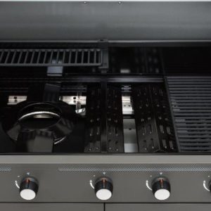 Modernin ulkoasun 4 poltin kaasugrilli sivukeittimellä. Tämän grillin erikoisuus on tehokas rengaspoltin upotettuna grillin sisään. Tämä poltin yhdistettynä Multigrill ritilään asennettaviin lisätarvikkeisiin mahdollistaa todella monipuolisen grillaamisen. Grillissä on 3 kpl pääpoltinta, 1 kpl rengaspoltin sekä 1 kpl sivukeitin. Pääpolttimet ovat 304 ruostumattomasta teräksestä valmistettuja U-polttimia. U-polttimet takaavat erittän tasaisen lämmön. 3 poltinta vastaa 6 tavallista poltina. Pääpolttimien teho 3 x 3,4 kW. Rengaspolttimen teho 5 kW. Sivukeitin on upotettuna tuulelta suojaan. Sivukeittimen teho 3,1 kW. Kokonaisteho 18,3 kW. Piezo-sytytys sisäänrakennettu jokaiseen säätönuppiin, LED valoilla. Grillausala on 97 x 48 cm. Grillauspinta on jaettu 4 x 23,5 x 47,5 cm valurautaritilän kesken. Grillauspinnnan voi muokata oman maun mukaiseksi laajan Sapphire tarvikevalikoiman tuotteilla. Lämmitysritilä 47,5 x 12 cm valurautaa. Lämmitysritilää voi muokata Sapphire tarvikkeilla. Lämmönjakopellit 3 kpl emaloidusta teräksestä lisäksi 1 kpl rengaspolttimeen sopiva lämmönjakopelti emaloidusta teräksestä. Grillin tuplakansi on valmistettu pulverimaalatusta teräksestä, jonka päädyt ovat valualumiinia. Kannen lasin läpi voit seurata grillattavien tuotteiden kypsymistä. Grillin runko on pulverimaalattua terästä. Sivutasossa on tarvikekori sekä ripustuskoukut. Kaapin ovet avautuvat painamalla niitä sisään. 2 pientä ja 2 lukittavaa siirtopyörää