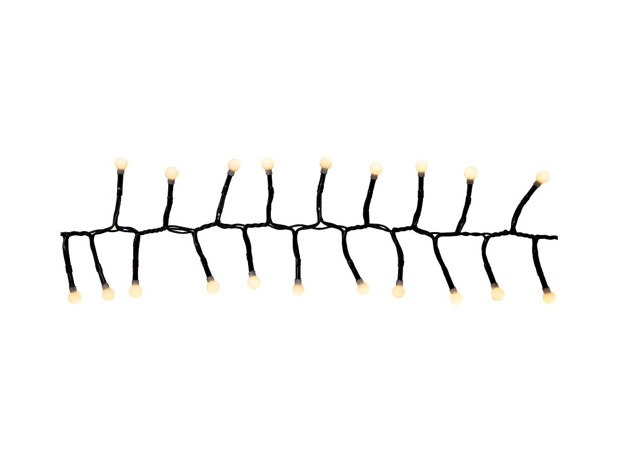 Ulkokäyttöön soveltuva, hauskan näköinen valosarja. Ledit loistavat pienten opaalikupuisten pallojen sisällä. Kupu tekee ledien loisteesta pehmeän ja miellyttävän. Palloja on led-sarjassa hyvin tiheästi, 2 cm välein! Sarjassa on 200 lediä, valo-osuuden pituus 4 m.