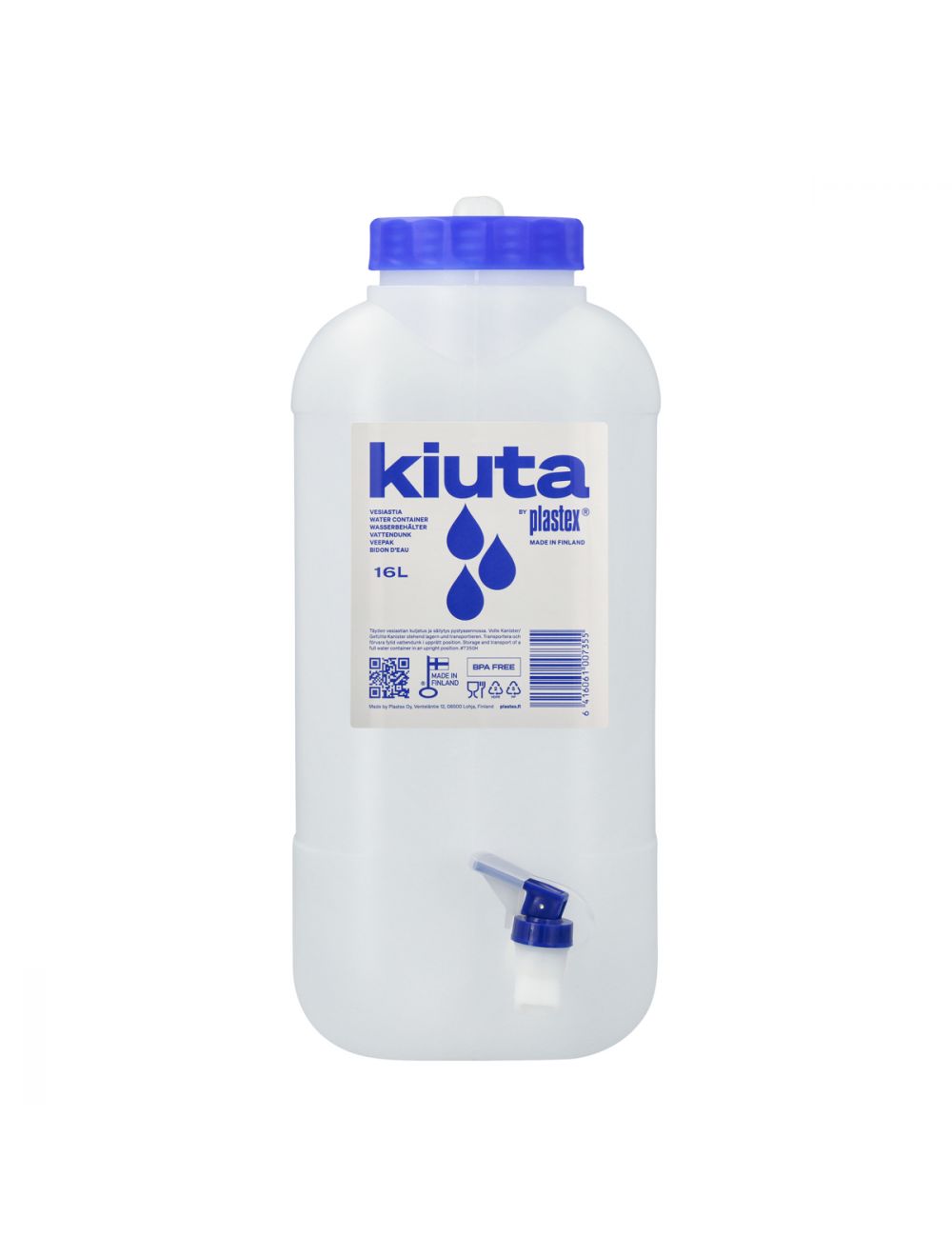 Olipa kyseessä kesämökkireissu tai matka matkailuautolla, tämä vesiastia on täydellinen ratkaisu juomatarpeisiisi. Laadukas kotimainen iso vesiastia hanalla, josta riittää juotavaa jaettavaksi koko joukkueelle! Vesiastia soveltuu mökille, veneeseen, retkeilyyn, matkailuautoon, työmaalle ja vesikatkosten aikana juomaveden kuljetukseen. Sopii veden lisäksi hyvin myös mm. mehulle, kotiviinille ja kotikaljalle. Painohanan saa pysymään auki, jolloin vesi pääsee valumaan ja kädet jäävät vapaaksi. Helppo kuljettaa tukevan kantokahvan avulla. Helppo puhdistaa ja pitää puhtaana ison suuaukon ansiosta. Korkissa tiiviste varmistamassa vesiastian tiiviyden. Kuljetus ja säilytys pystyasennossa.