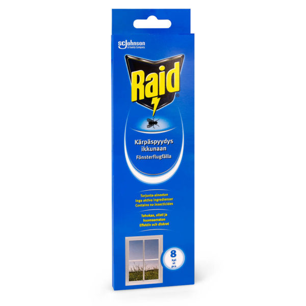 Raid Kärpäspyydys ikkunaan on noin 23 cm pitkä ja 5 cm korkea liimapintainen ja läpinäkyvä ansa. Se sopii erityisesti käytettäväksi kesämökissä, asuntovaunussa, veneessä ja missä tahansa tilassa, jossa kärpäsiä parveilee ikkunoilla. Kärpäspyydys on erityisen kätevä ikkunoilla, joiden laudoilla on sääskiä ja multakärpäsiä kerääviä kukkaruukkuja. Tuote ei sisällä kemiallista tehoainetta ja on täysin myrkytön.