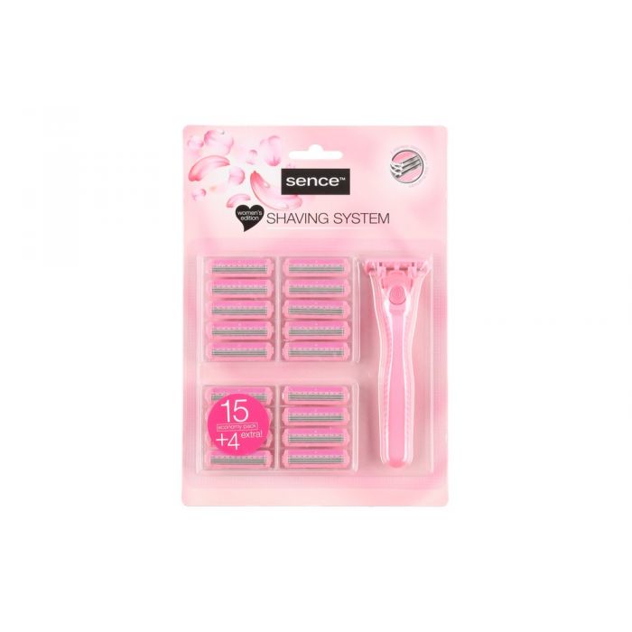 Pakkaus sisältää varsiterän, jossa on taittuva ajopää sekä hyvän pidon takaava kädensija, sekä 19 kpl vaihtoteriä. Ajoterissä on kosteuttava tyyny ja kolme karvanpoistoterää, jotka leikkaavat ihokarvat tasaisesti ja hellävaraisesti.