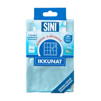 Mikrokuituinen ikkunaliina ikkunoiden ja parvekelasien tehokkaaseen puhdistamiseen. SINI-Ikkunaliinassa on kaksi erilaista pintaa. Kiilamaiset kuidut poistavat lika- ja rasvatahrat pelkällä vedellä. Sileä puoli kuivaa ja viimeistelee ikkunat säihkyvän kirkkaiksi. Liinassa on kätevä ripustuslenkki, jossa lukee käyttökohteen nimi ja liinan saa ilmavasti kuivumaan. Liina kestää kymmeniä pesukertoja pesukoneessa 60 asteessa.