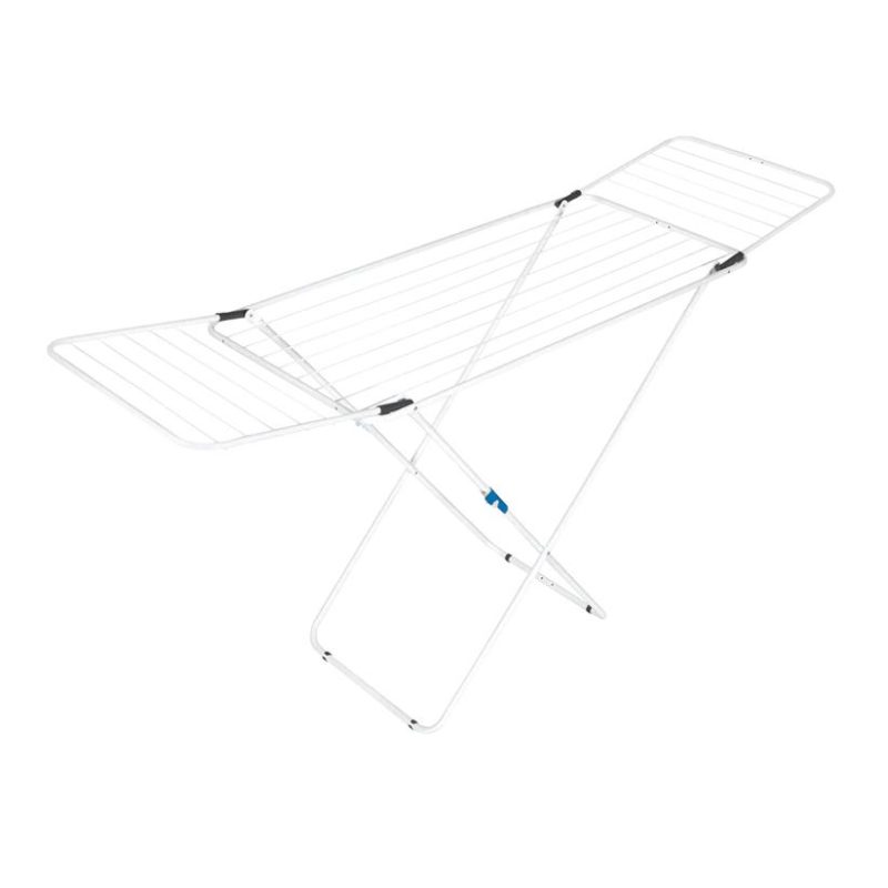 Tukevassa Lenni-kuivaustelineessä on kaksi lukitusjärjestelmää. Patentoitu ratkaisu lukitsee siivet, kun teline on taitettuna, mikä lisää käyttömukavuutta ja -turvallisuutta. Siivekkeet eivät aukea sormille tai jaloille, vaan siivekkeet todella pysyvät kiinni, ja pyykkiteline on helppo laittaa säilytykseen. Telineen ollessa auki jalat saa lukittua kiinni, eli käytössä Lenni pysyy tukevasti pystyssä. Ripustustilaa 18 metriä