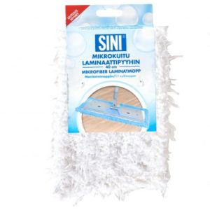 Laminaattipyyhin kiinnitetään SINI Monitoimimopin pohjassa oleviin tarroihin. Kostuta laminaattipyyhin suihkepullolla, tai jos lattiamateriaali kestää, pesuämpärissä. Pyyhinnän jälkeen laminaatti- tai parkettilattia ei saa jäädä märäksi – muutoin vettä on ollut liikaa.