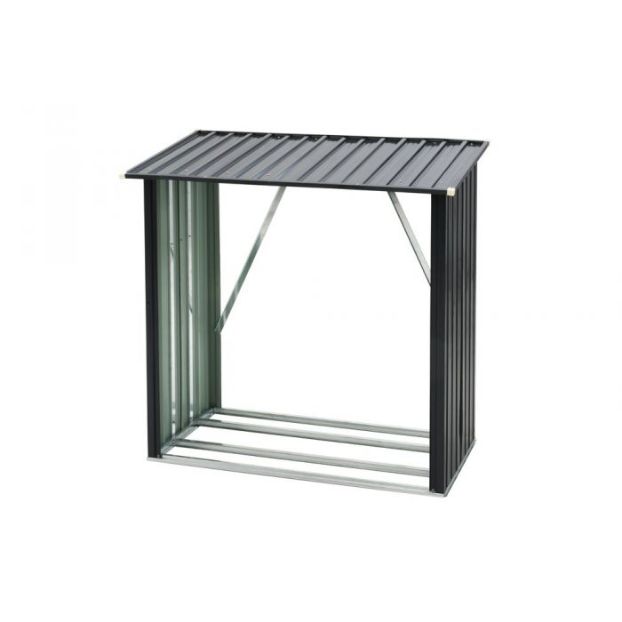 163×83×142/154 cm. Pohjan sisäkoko 150×75 cm. Teräsrunkoinen suojakatos polttopuille. Runko valmistettu 0,6 mm vahvasta sinkitystä teräksestä, seinät 0,25 mm vahvaa tumman harmaata teräslevyä. Suojaa polttopuusi sateelta ja kosteudelta tällä tyylikkäällä katoksella!
