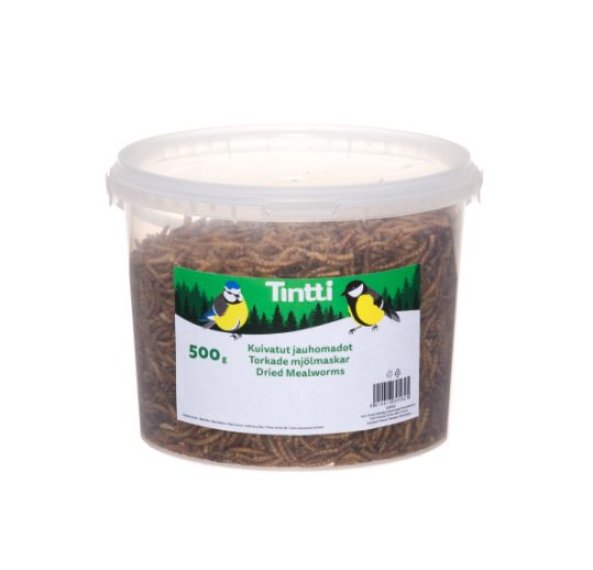 Jauhomadot muovisangossa. Helppo kuljettaa ja säilöä. Lisäravinto luonnonvaraisille linnuille.