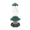 Tarjoa tukiravintoa pihan linnuille. Isoon kolmiosaiseen syöttimeen saa kerralla auringonkukansiemenet, maapähkinät sekä talipallot. Toisella puolella on kolme syöttöaukkoa lepo-orsilla ja toisella teräsverkko talipalloille. Koko 25 x 39 cm.