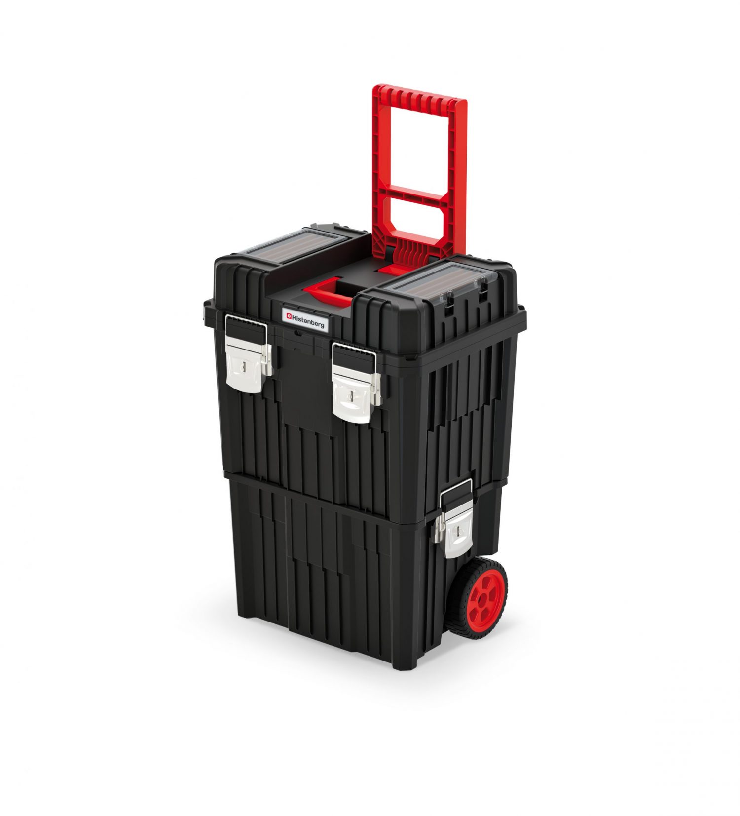 - 450x360x640mm. Erittäin vahva vedettävä työkalupakki renkailla. Pölyn- ja vedenkestävä kiinteän tiivisteen ansiosta. Kannessa pientavaralokerot, sisällä kestävä kahvallinen lokerikko