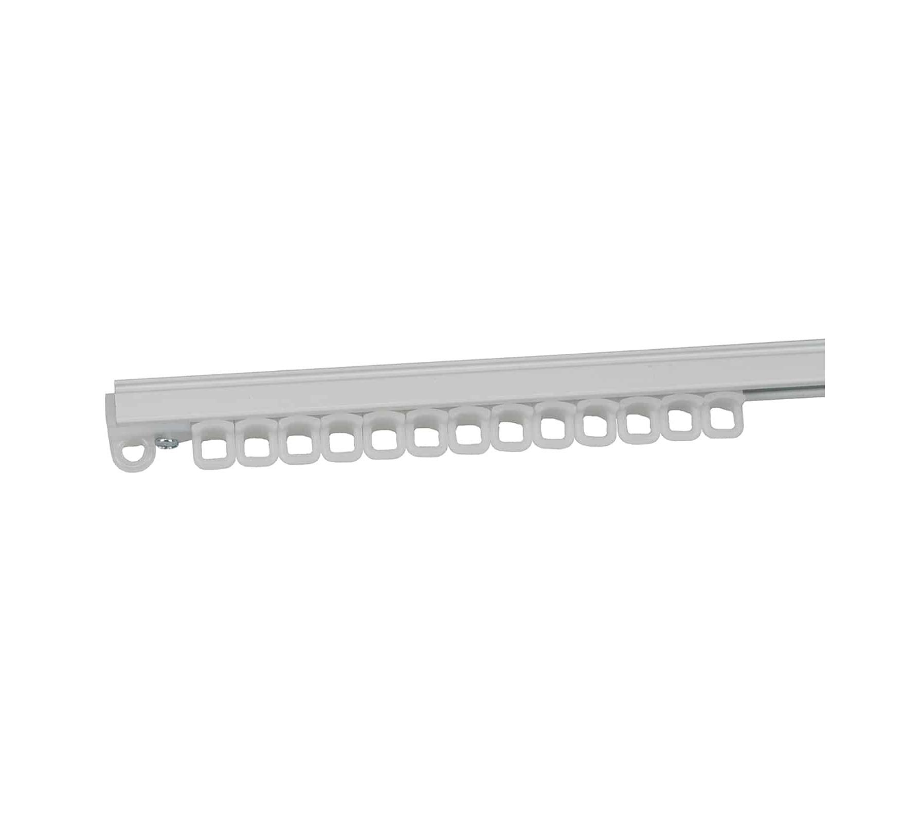Pakkaus sisältää 4 kpl kattokannakkeita, 40 kpl liukuja, 2 kpl pysäyttimiä ja päätytulpat sekä ruuvit. Kisko voidaan kiinnittää kattoon mukana tulevilla kattokannakkeilla. Kantavuus noin 8 kg (kantavuuteen vaikuttaa kattokiinnikkeiden määrä ja katon materiaali).