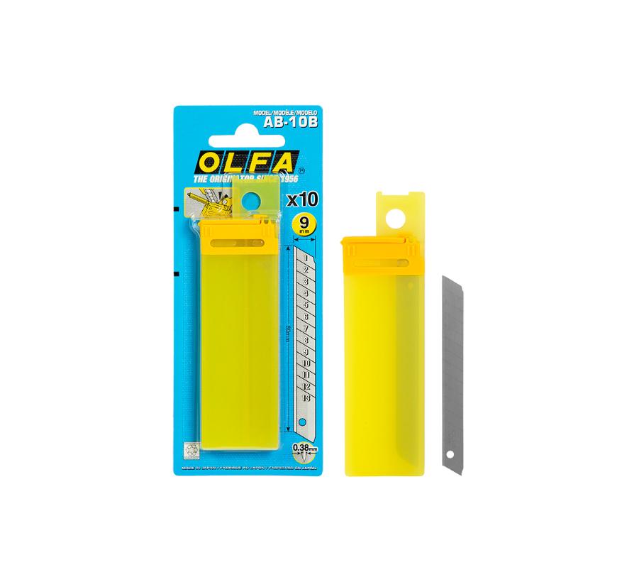 -katkoteräpakkaus hopea -soveltuu 9 mm veitsille -pakkaus sisältää 10 kpl teriä -muovikotelo terille