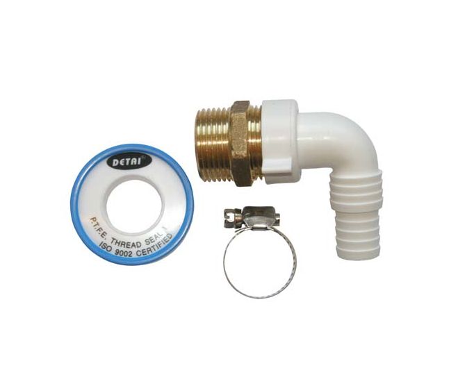 Vesiautomaatin lähtösetti sisältää kulmaputken, letkunkiristimen ja putkiteipin
