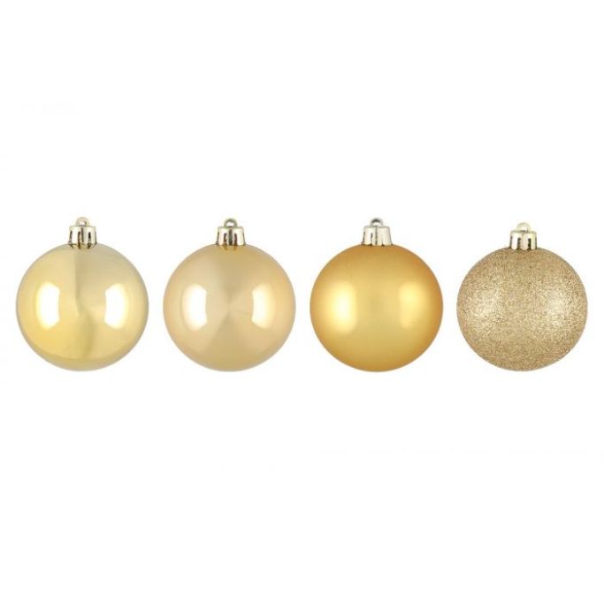 Pakkaus sisältää joulupalloja neljällä erilaisella viimeistelyllä (kiiltävä, helmiäinen, glitter ja matta), näin saat nopeasti kartutettua erilaisten koristeiden kokoelmaasi ja voit loihtia monipuolisia ja näyttäviä koristeluita. Valmiiksi kiinnitetyt ripustusnarut.